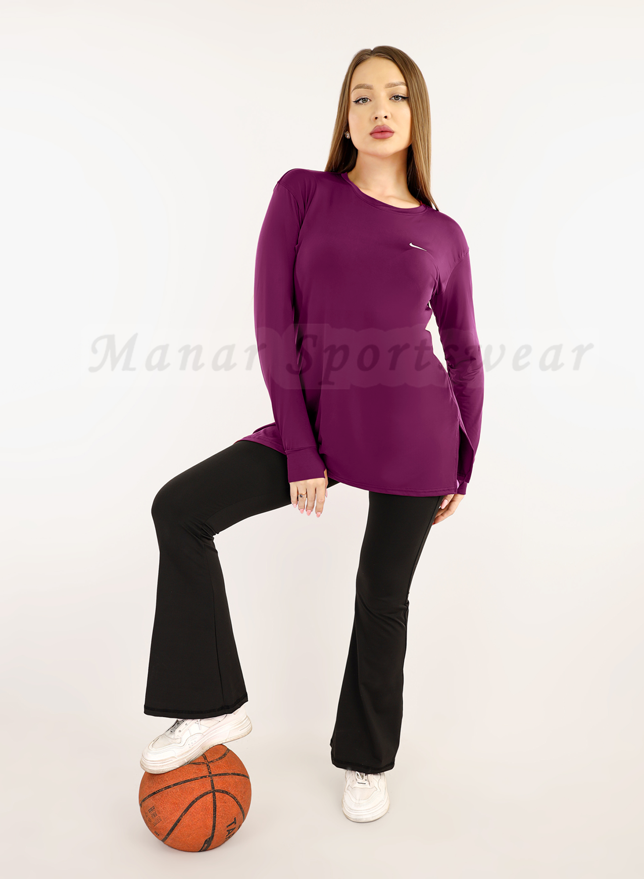 طقم رياضي أنيق ومريح يتكوّن من تيشيرت أوفرسايز بكم طويل وبنطلون شارلستون واسع من الأسفل. مصنوع من خامة Dri-Fit خفيفة ومطاطة تمتص العرق وتحافظ على جسمك جافًا ومريحًا أثناء الحركة.