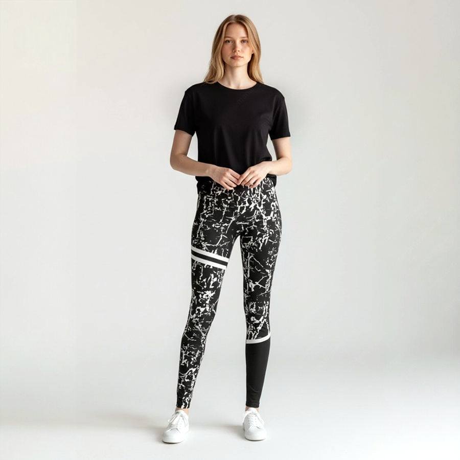 Printed performance leggings made from soft, stretchy fabric with sweat-wicking and quick-dry features. Provides a flattering, supportive fit for workouts and everyday wear.